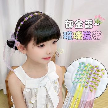 Kinderen Cartoon Garen Tulpen Haar Ketting Parel Kwast Gevlochten Haarspeld Prinses Hoofdband