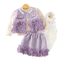 ملابس أطفال بناتي في سن الحبو للخريف والشتاء 2-3 سنوات ملابس أطفال توبات + سترة فرو + تنورات 3 قطع أطقم ملابس أطفال