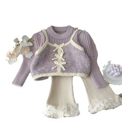 2025 Sweet Design Ropa de bebé Primavera y otoño Conjunto de ropa cálida de 3 piezas para niñas