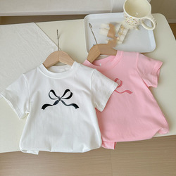 Europe Summer New Girl Bowknot Set Girl Short Sleeve Waist-Pleated Skirt 2-Piece Set