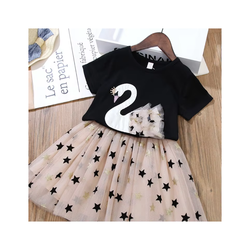 漫画の幼児と女の赤ちゃんのドレスホワイトショートTシャツ白鳥メッシュスカートセット