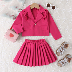 2023キッズ秋服カジュアルガールズ服無地長袖ジャケットフリルスカート2枚衣装